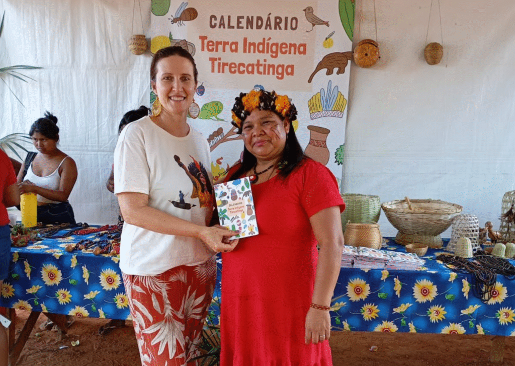 A equipe seguiu viagem até a Terra Indígena Tirecatinga, onde foi recebida pela presidente da associação, Cleide Terena, pela vice-presidente Suyane Terena e pela Claudiane, que são pontos focais do projeto. Na ocasião, a comunidade realizou o lançamento do calendário ecológico, produzido pela Associação Thutalinansu em parceria com a OPAN. O evento contou a participação de diversas pessoas da comunidade e incluiu também uma feira de artesanato organizada pelas mulheres indígenas que fazem parte do projeto.